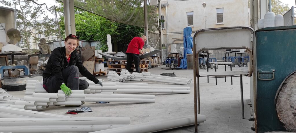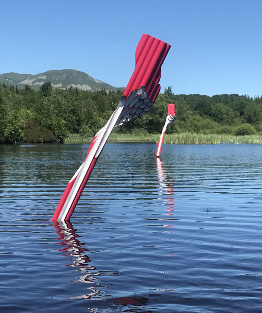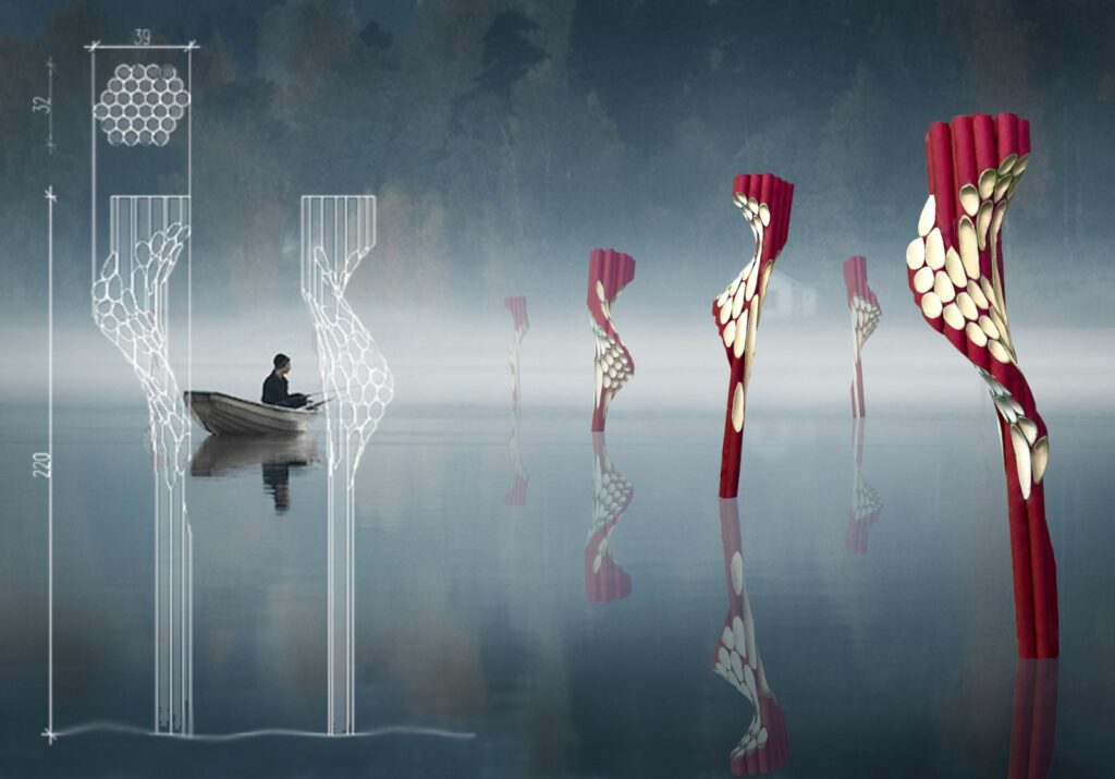 Zbiór rzeźb na stawie, kojarzących się z abstrakcyjną, geometryczną rośliną, którą możemy nie tylko zauważyć, ale również usłyszeć.